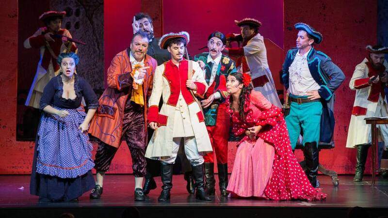 “El Barbero de Sevilla se presenta en castellano y con adaptación y puesta en escena de María Jaunarena, dirección musical de Hernán Sánchez Arteaga y escenografía e iluminación de Gonzalo Córdova.