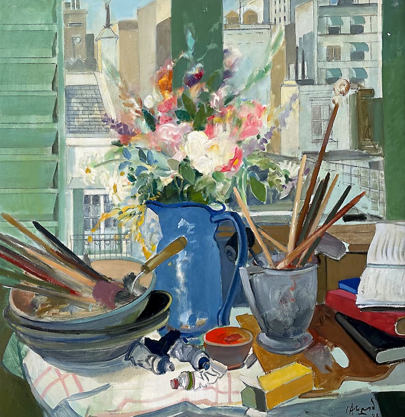 De Carlos Alonso hay una pintura (1978) de los elementos con los que crea, que sale por primera vez a la venta. Para Alonso, uno de los grandes maestros nacionales, la propia pintura es uno de sus temas claves: pintó la intimidad de su taller, sus modelos y también a artistas admirados como Edvard Munch, Renoir, Egon Schiele, Monet y Lino Enea Spinlimbergo, su maestro.