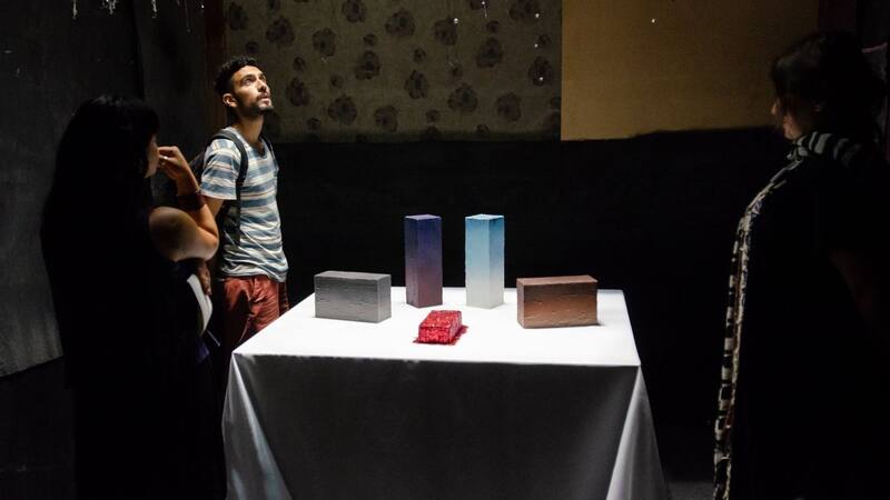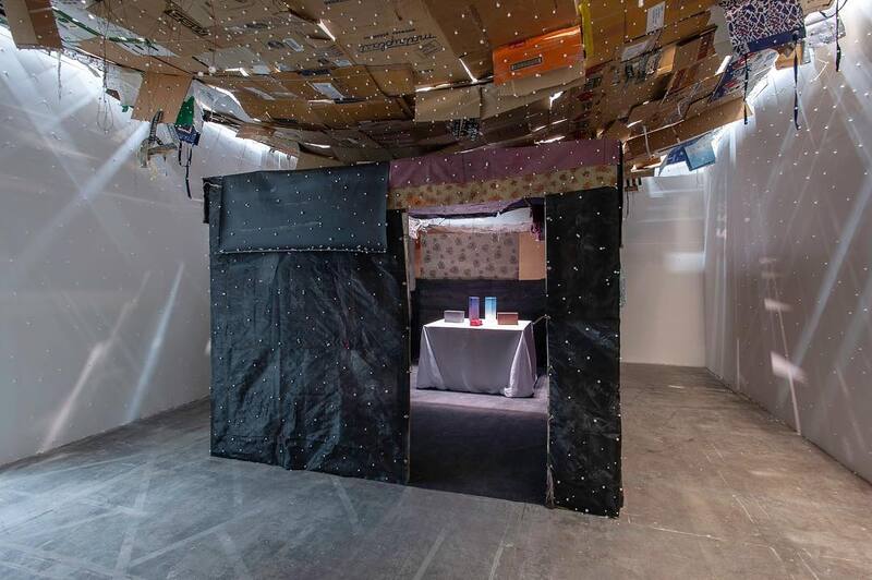 En una segunda sala nuestro mesías del primer espacio se corre de su rol y nos trae el nacimiento de otro elegido de una manera sencilla y al estilo Rojas. En la instalación “Bruma de Belén en el Riachuelo erige un pesebre de cartón con figuras geométricas. El niño Jesús esta representado como un rectángulo rojo recubierto con brillantina. Una representación sencilla para una historia universal.