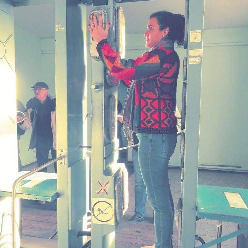 Paula pasando por el detector de radioactividad en Chernóbil