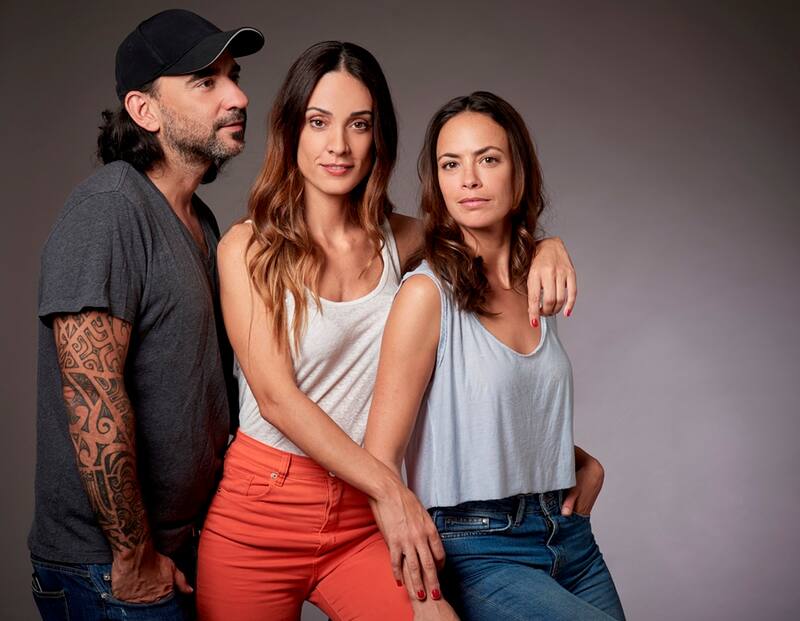 Trapero junto a las protagonistas de La quietud: su esposa, Martina Gusmán, y Berenice Bejo.