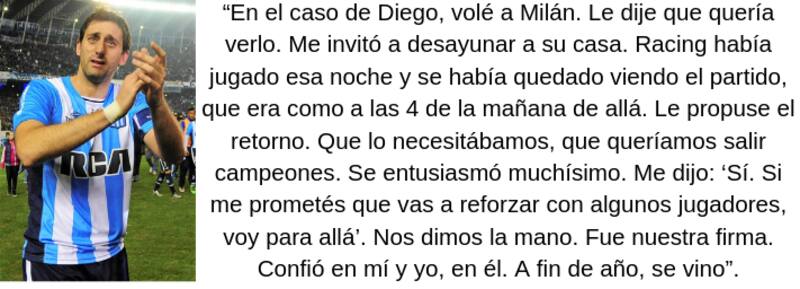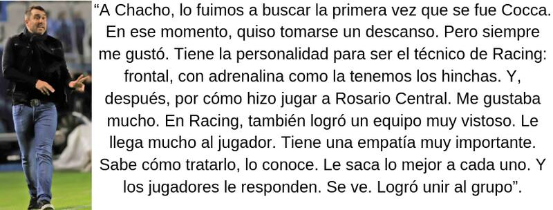 Hace poco, declaró que, hoy, Racing está en los lugares que debe estar. Por la presencia que consiguió en AFA.