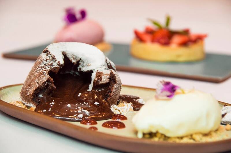 Elegimos seguir con el hoookipa boeuf (un corte premium de carne con morillas, cebolla caramelizada, puré de papas y salsa bordelaise) y el truite saumonée grillée (una trucha grillada, puré de topinambour, salsa de mandarina, mango y tomate concassé). De postre, un volcán de chocolate y una creme brulée en colchón de dulce de leche. Hasta ahora, una cena sofisticada en un lugar fancy, con gente muy bien vestida.