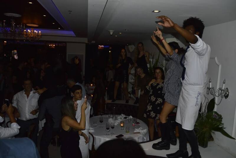 Pero a medida que se acercan las 12, las luces bajan y la música sube. Poco a poco, el ambiente se va transformando de restaurante a boliche: la gente empieza a levantarse de las mesas y se escuchan aplausos que siguen el ritmo de la música.