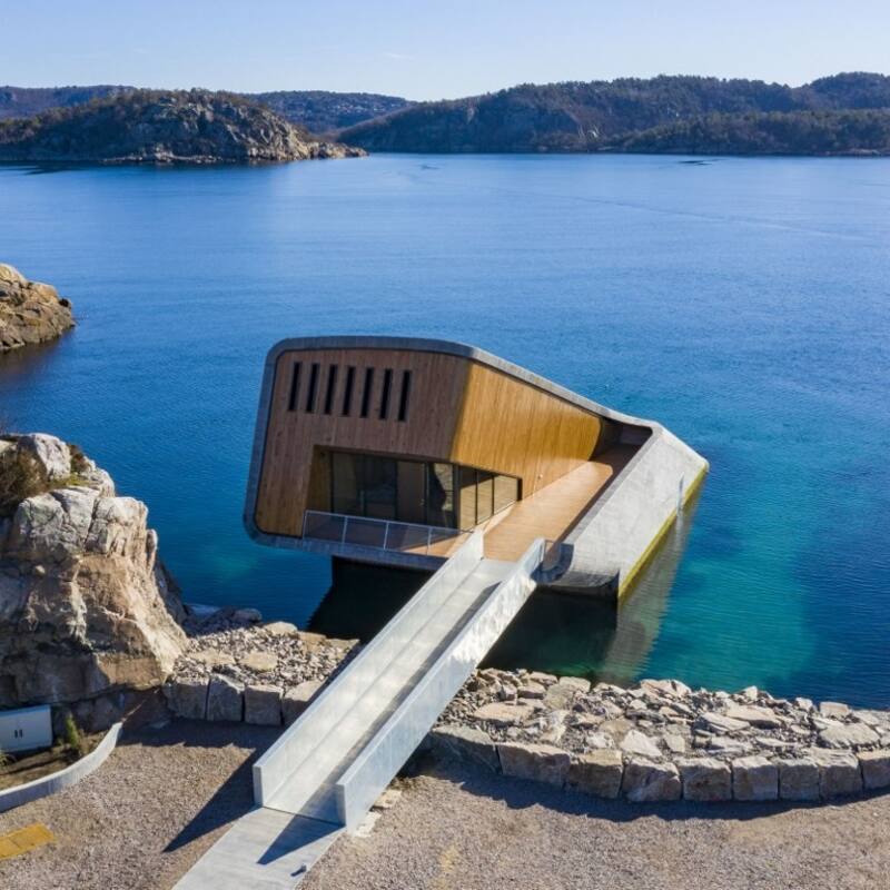 Con la idea de que los comensales puedan disfrutar de comer literalmente bajo el agua, el restaurante es un gran tubo de hormigón parcialmente sumergido en el Mar del Norte. Se llama Under, que significa 'maravilla' en noruego, y fue diseñado por el estudio de arquitectura Snoehetta, que también creó la Ópera de Oslo y el Museo Nacional Conmemorativo del 11 de Septiembre en Nueva York.