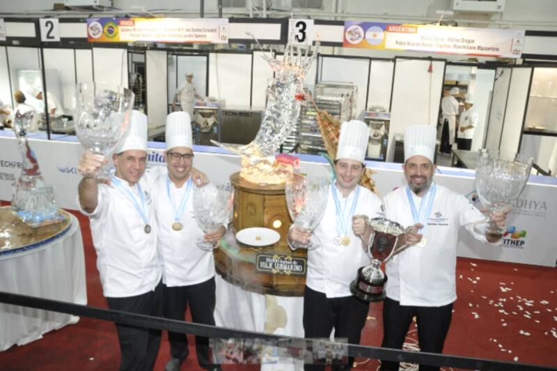 El equipo liderado por el maestro heladero Maximiliano Maccarrone, junto a Rubén Darré, Matías Dragun y Pablo Renes fue tambiénreconocidos con menciones por mejor trabajo en equipo y mejor escultura de hielo. Sus creaciones: helado de dulce de leche con mandarina y pimienta rosa, helado fusión de chocolate y maracuyá, torta helada de mascarpone de lima, frambuesa y merengue de coco, y un helado salado de crema de hongos, queso y ciboulette. El segundo puesto fue para Colombia, que también viajará al mundial, y el tercer puesto para Uruguay, quien además recibió el reconocimiento a la creatividad. Los otros países concursantes fueron Brasil, Ecuador y Perú.