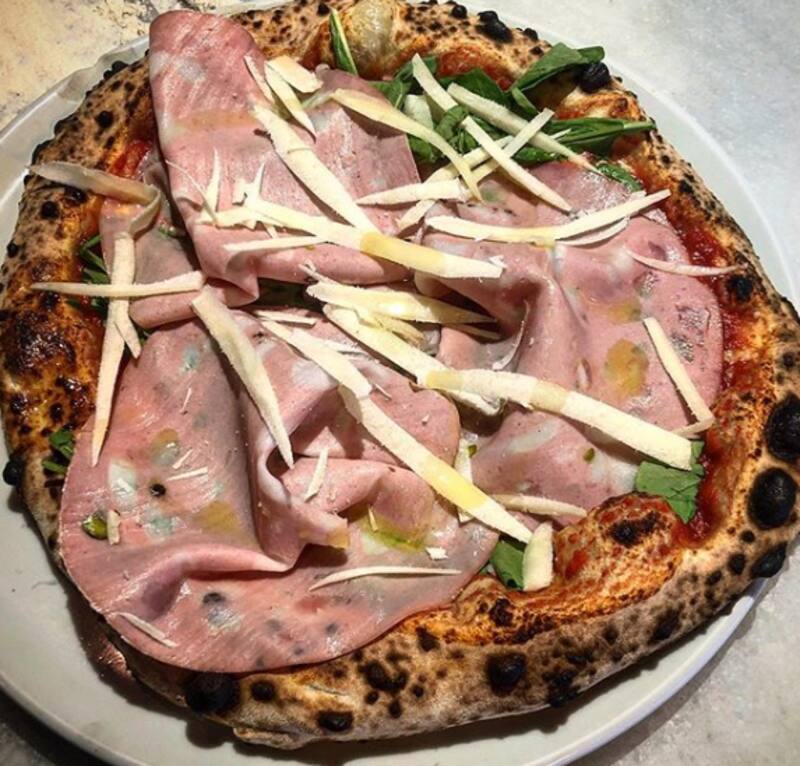 Pizza Montanarina: pizza frita con lardo y peperoncino $100