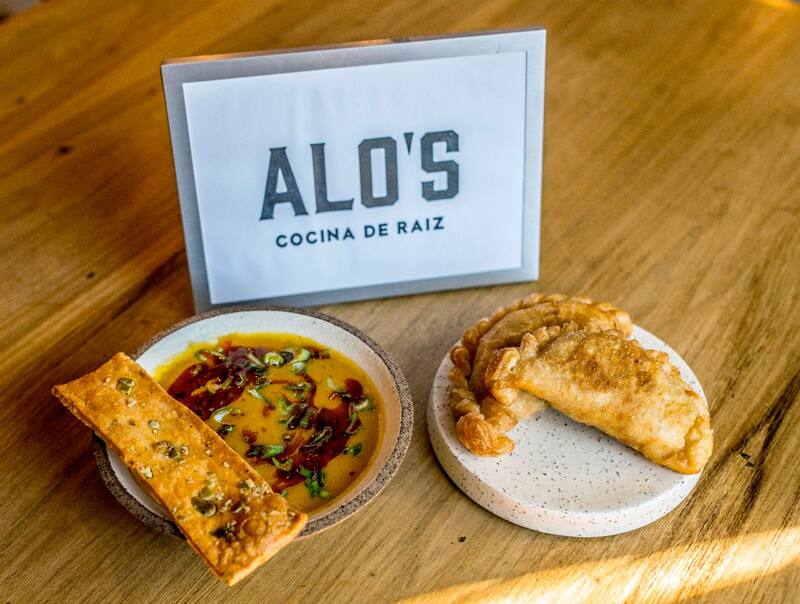 Repollo braseado, levadura tostada y reggianito y Empanada frita de cordero y boniato