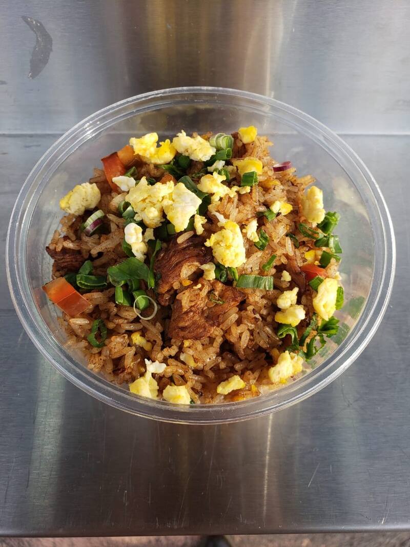 BIBIMBAP: arroz, zanahoria, verdes, pickles estilo viet, kimchi, carne de ternera con marinada bulgogi, huevo de codorniz, semillas de sésamo y salsa picante $150