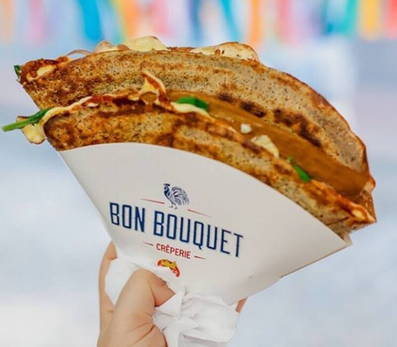 Crepe 2: rúcula, queso cuartirolo de Juan Grande y boniatos en almíbar $150