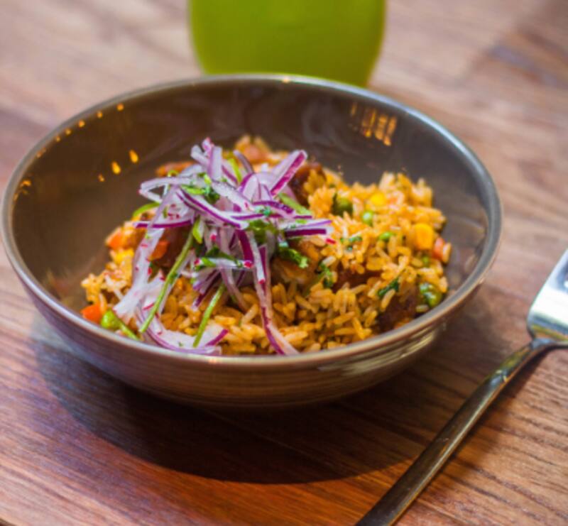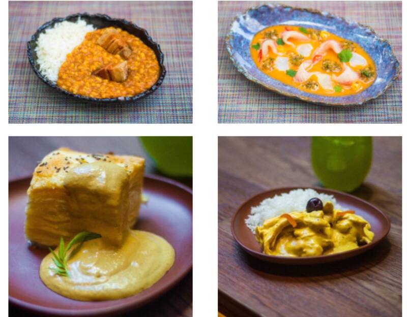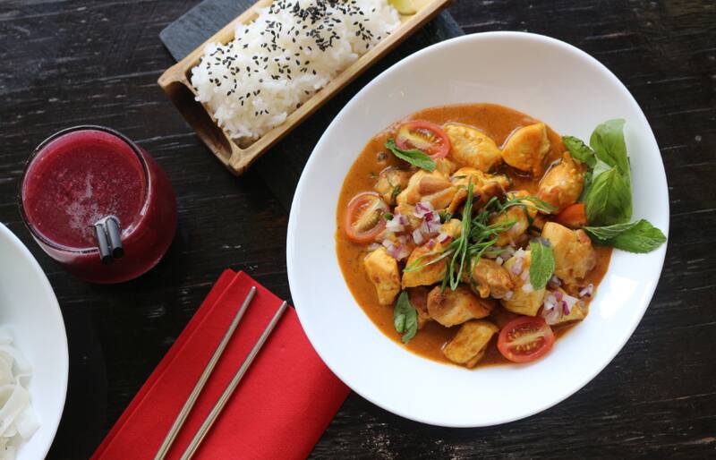CÀRI GÀ TU CHÊ: curry de pollo, leche de coco, lemon grass y maní. Acompañado de arroz, mandioca, papa y batatas fritas $200