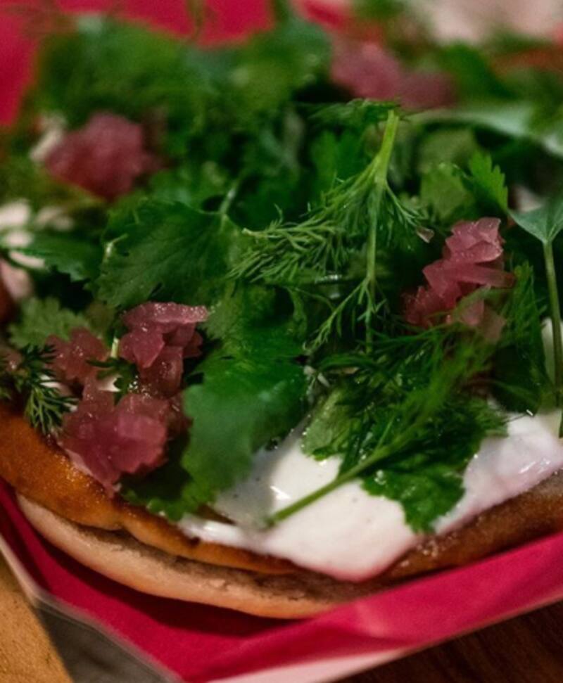 Taco: mbeyú - chivo - membrillo - hinojo $200