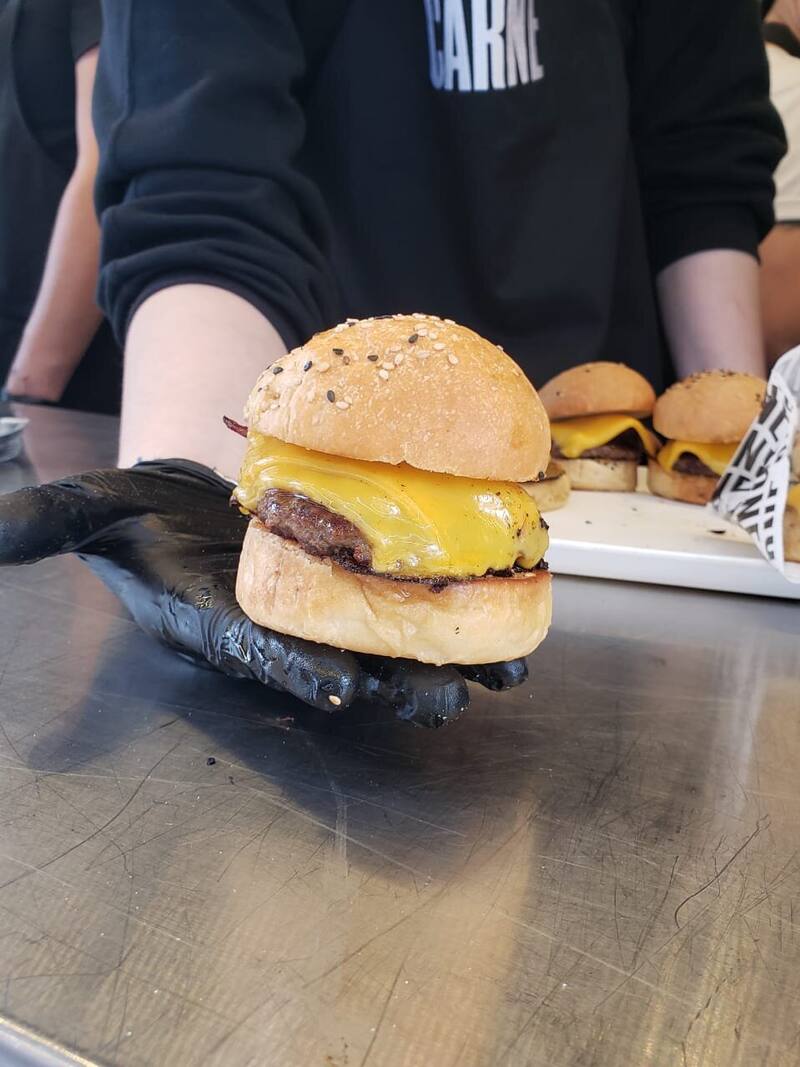 Hamburguesa con cheddar y panceta crocante en pan brioche $150