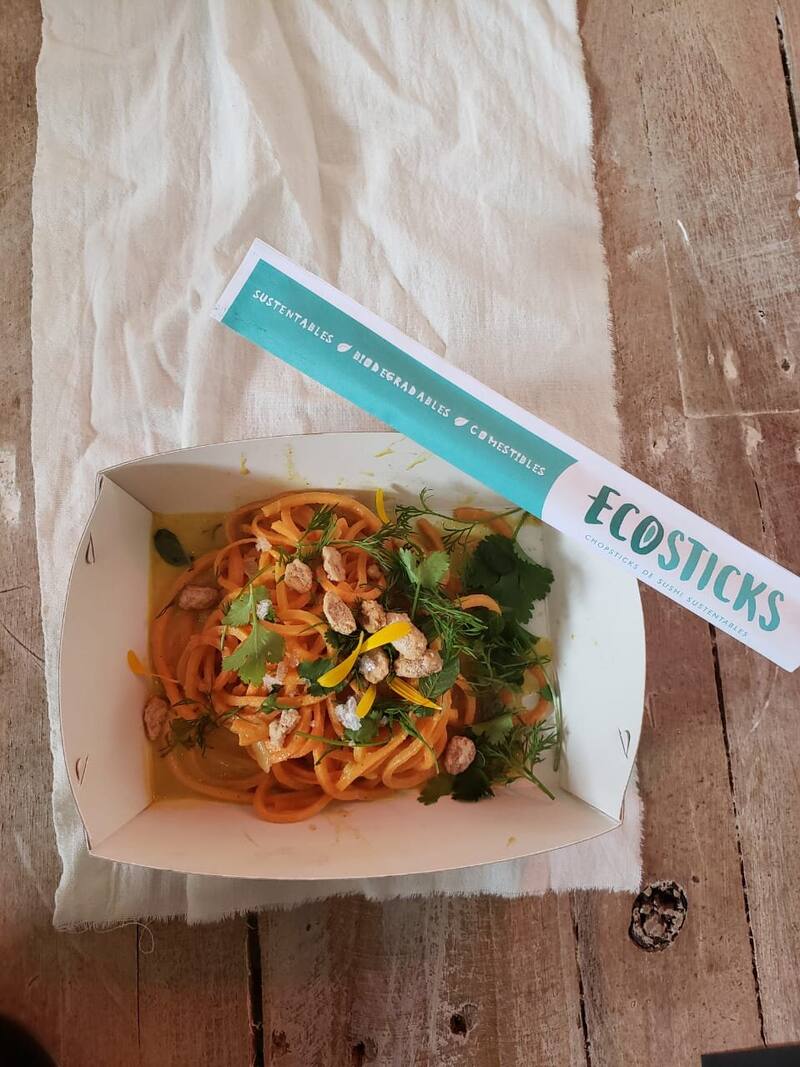 Fideos de vegetales especiados+ Ensalada de hierbas y micro greens, salsita picante. $200