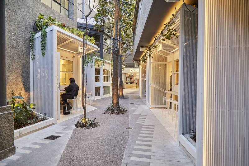 "El objetivo que nos plantearon fue rejuvenecer el pasaje con un corredor gastronómico conjunto y no con puestos aislados. Si bien cada uno de los 10 locales tiene su propia impronta, ahora están vinculados con un mismo lenguaje arquitectónico", describe Leonardo Militello, del estudio HMA, que estuvo a cargo de la remodelación.