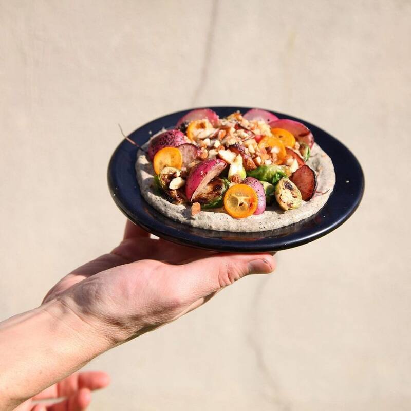 Te adelanto un poco de qué va la cosa: nos explicaron que la vedette del lugar es el horno de leña. De acá salen los panes chatos y cada uno de los panificados que sirven de colchón para las diferentes preparaciones; por ejemplo, el pan chato que sale con ricotta, romesco, almendras y zataar (la mezcla árabe de especias). Una alternativa para la misma base, es la de merguez (el clásico embutido rojo), yogurt y salsa harissa. Además, acá se elaboran platos que tampoco pierden su toque de frescura estacional, como los puerros y pepinos marinados con crema de cajú acompañados de pan grattato (te traduzco: es el término italiano para "rallado"). Si sos de buen comer también sos bienvenid@ aquí, pues encontrarás opciones con distintas carnes de base que seguramente también te sorprenderán. Aunque la oferta culinaria aquí pueda parecer limitada, te aseguro que es toda una apuesta.