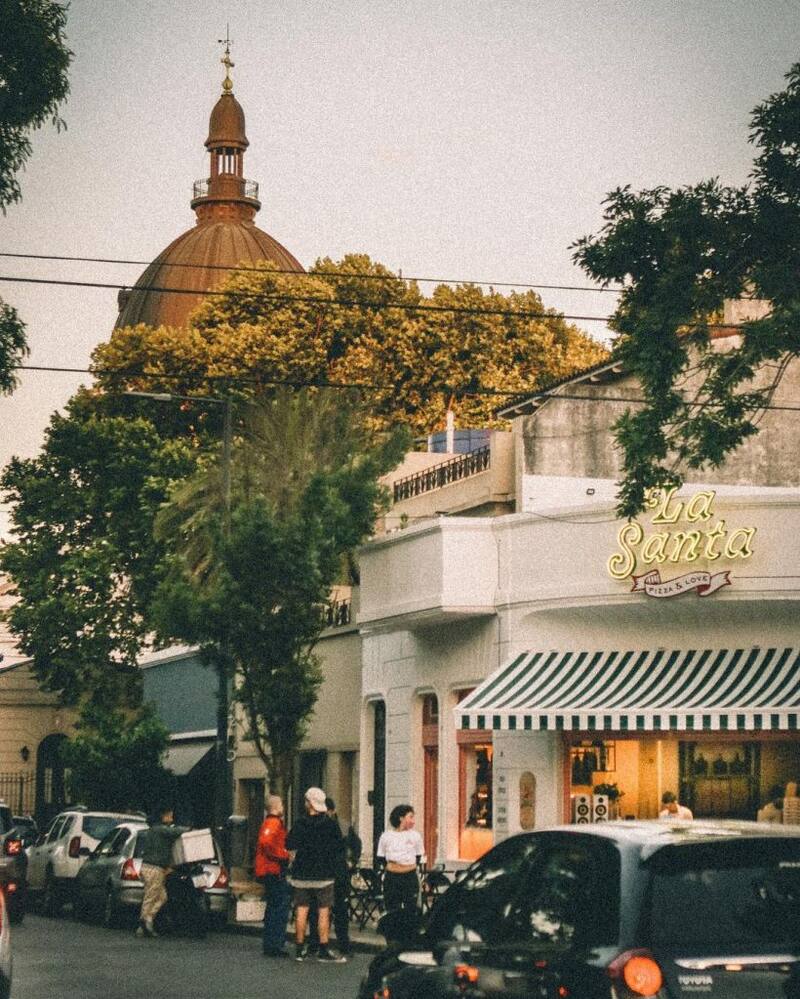 Cae la tarde y en Devoto se enciende en la noche, el cartel de neón con el nombre "La Santa", y toda una experiencia religiosa para disfrutar al aire libre. Esta pizzería con fuerte devoción por el estilo pizzero del sur italiano, es la prima hermana de las también porteñas "la Fina" y "La Épica", así como de la oriunda de Chapadmalal, "La Audaz".