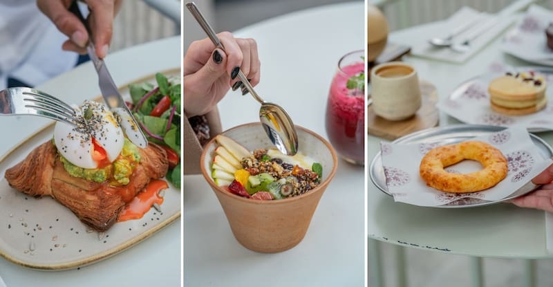Entre los imperdibles se destacan el yogur natural con granola casera y frutas frescas, la danesa rellena de peras y crema de almendras, y los originales huevos turcos con yogur cítrico y trucha curada. También sobresale el tamago de huevo revuelto con lomito ahumado y quesos, además del hojaldre estilo fosforito y el tostadito de pan chipá con jamón, queso y huevo revuelto.
