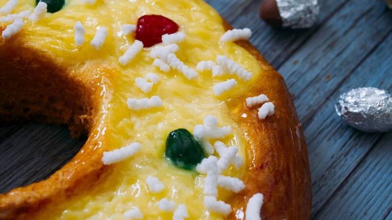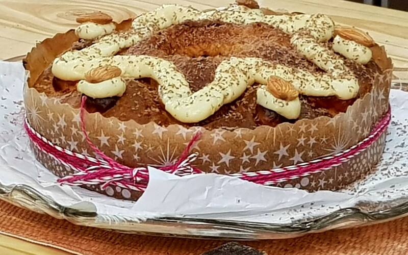 Se trata de un tipo de pan leudado, es decir, fermentado con levadura, algo dulce y pegajoso, que se decora -en su versión tradicional- con crema pastelera, cerezas y huevos.