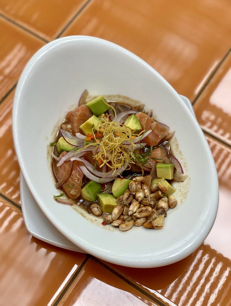 En el barrio de Caballito, en Ronconcon se fusionan productos autóctonos y recetas típicas de Venezuela, Colombia, México, Ecuador y Perú con guiños a la gastronomía argentina. De esta mixtura de sabor con toques de autor, una de sus preparaciones estrellas es el ceviche de pesca curada con ají amarillo, maíz chuspillo, mango y sésamo. Se sirve acompañado de chips ($890). Se puede comer en el local y también pedir por delivery y take away.