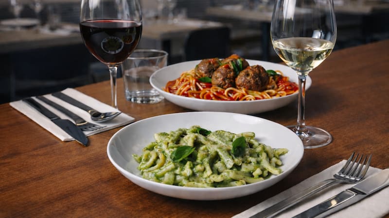 ¿Qué pedir? Hay lugar para los clásicos: pesto amatriciana o pomodoro con albóndigas. Lo que conocemos, hecho con la precisión de quien sabe que en lo simple no hay dónde esconderse. Pero también hay combinaciones que elevan la apuesta, como el binomio de cerdo y langostinos en los canelones o la potencia de productos de estación como una pasta de chitarra con arvejas y stracciatella que te la voglio dire.