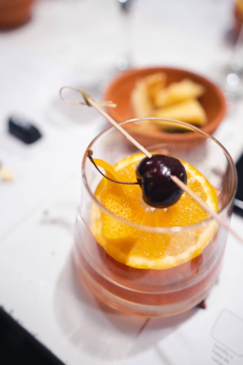 Preparación: en el vaso de whisky ponemos 7 gotas de Angostura y las tres cucharadas de azúcar. Formamos una pasta y pintamos el vaso con la misma, luego sumamos los 50 ml de The Macallan, por último la esfera de hielo y la piel de naranja la apretamos cerca del vaso para que desprenda sus aceites esenciales. La hacemos un rulo y le ponemos la cereza como el garnish.