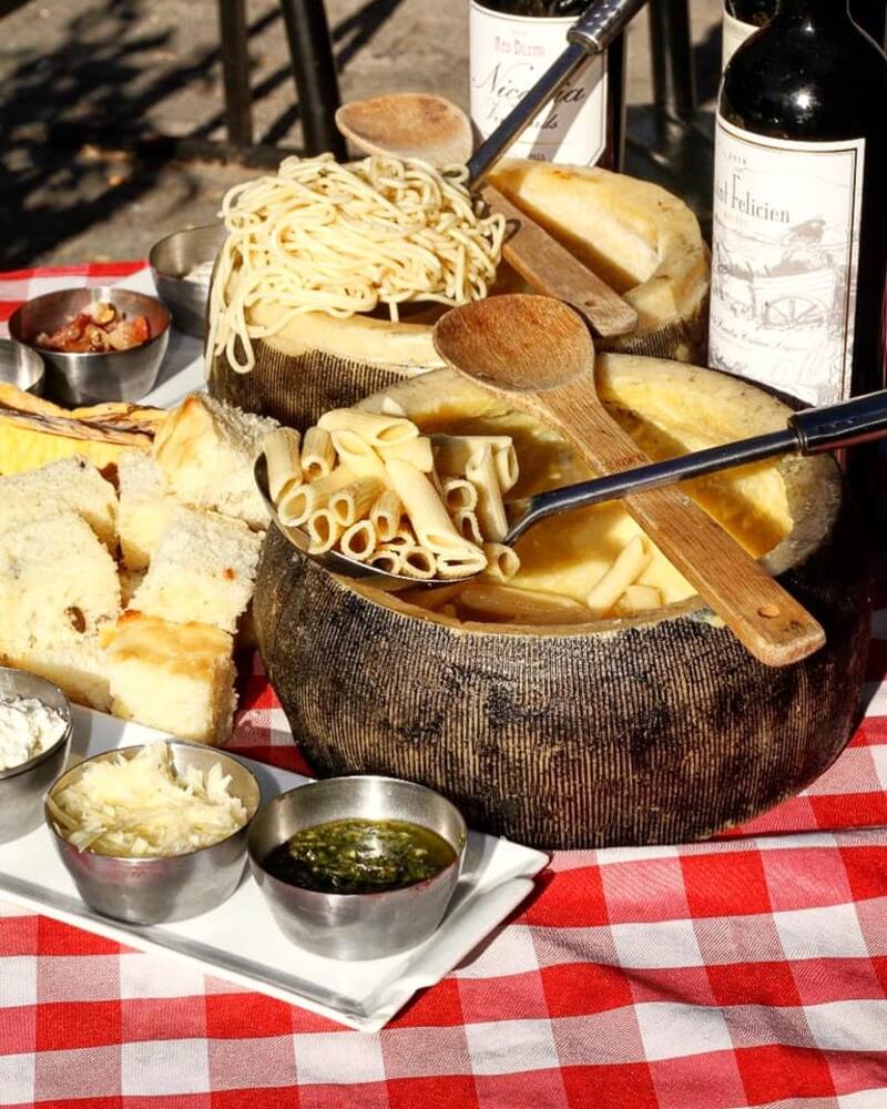 El lugar es una propuesta gastronómica perfecta los amantes de la comida italiana. El plato destacado de la casa son las pastas preparadas al route, una horma de queso fundida con varias salsas a elección. También hay otras variedades como ravioles, linguinis y pastas a la parmesana, entre otras.