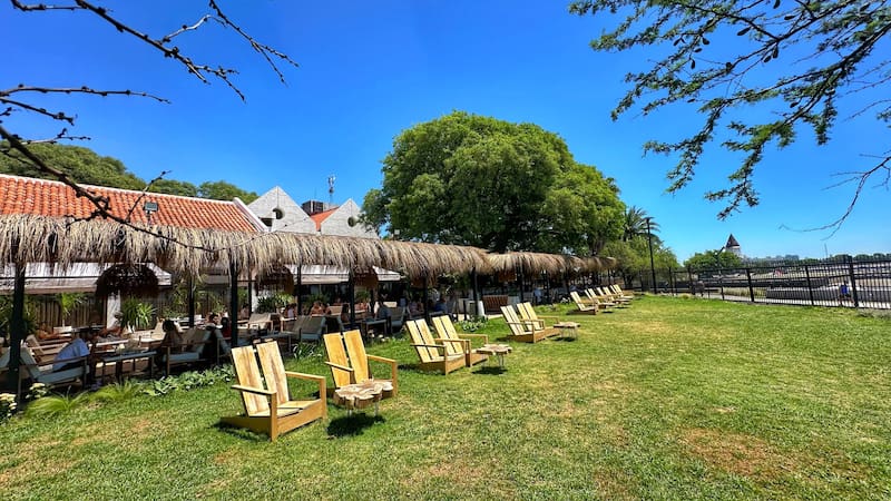 Las mesas y sillones están cuidadosamente dispuestas para garantizar un ambiente relajado y acogedor y disfrutar de un plan distinto un fin de semana al aire libre en la ciudad de Buenos Aires.
