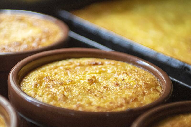 Ingredientes (para 6 porciones): Granos de choclo, 1 kg; huevos, 4 unidades; cebollas, 2 unidades; crema de leche sin TACC, 100 cc; mozzarella, 200 grs.; azúcar, 1 cda; sal, 1 cda; manteca, c/n