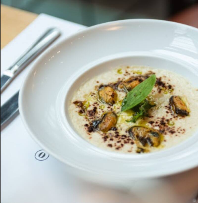 Junto con su destacada panificación artesanal, carnes y pescados al horno-parrilla de carbón Josper, pastas caseras y sándwiches, el restaurante de Pablo Massey propone una sopa de hinojo y mejillones más polvo de tomates secos. En Corrientes 421, Olivos.