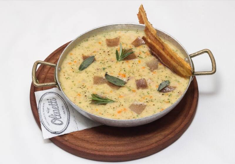 El restaurante italiano propone una sopa de alubias blancas, cuero de cerdo y pancetta, con el sello de Juan Ayesa. En Av. Cerviño 3800.