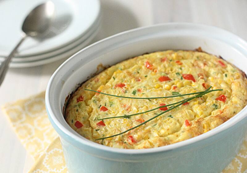 Mezclar los granos de choclo cocidos con la leche, la harina, el queso, las yemas y el queso rallado. Salpimentar. Por otro lado, batir las claras a nieve y una vez espumosas incorporarlas de a poco a la preparación anterior. Volcar todo en un molde para horno tipo budinera y cocinar durante 25 minutos aprox a una temperatura media- alta hasta que este dorado. Una vez cocido, desmoldar y servir en porciones.