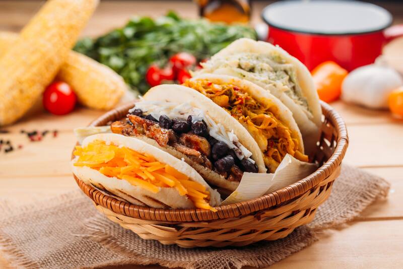 Mientras que la venezolana puede llevar desde carne, frijoles negros, plátano maduro, pollo, aguacate, hasta huevos de codorniz; en Colombia, por el contrario, muchas de las arepas sólo llevan un poco de manteca y queso encima.