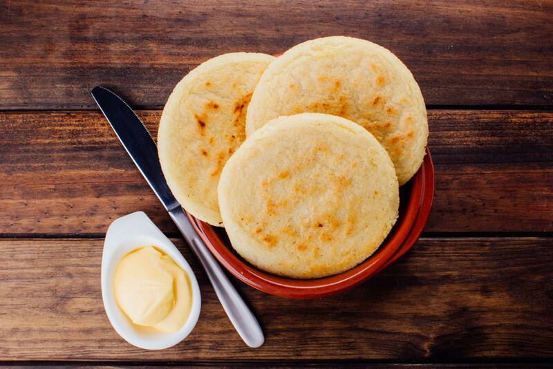 La arepa es un alimento típico de Colombia, Venezuela y Bolivia. De origen precolombino, está hecha a base de masa de maíz seco molido o de harina de maíz precocida, es de forma circular y aplanada.