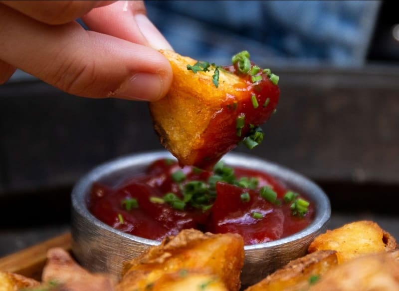 En los 7 locales de la cadena, las papas fritas tienen un apartado especial y se lucen en diferentes opciones tuneadas para acompañar su interesante selección de cervezas artesanales. Se preparan con una doble cocción para alcanzar una textura ideal: primero se fríen a 150°C y luego a 180°C.