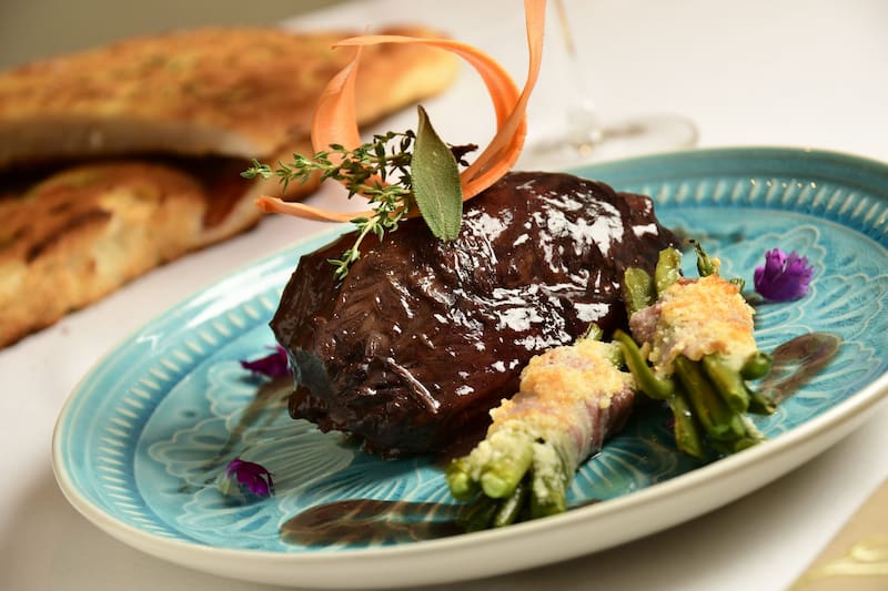 2. OSOBUCO AL VINO TINTO CON ROTOLINO DE CHAUCHAS Y PANCETA