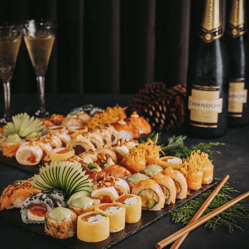 SushiClub ideó un menú variado, accesible y de calidad con brindis incluido para acompañar las celebraciones de fin de año. La propuesta para la Nochebuena y el Año Nuevo se compone de dos botellas de espumante Chandon Extra Brut x750cc más el combinado “Let’s Celebrate de 60 o 90 piezas de sushi que se ofrece a un precio de $4000 o $5100 respectivamente.