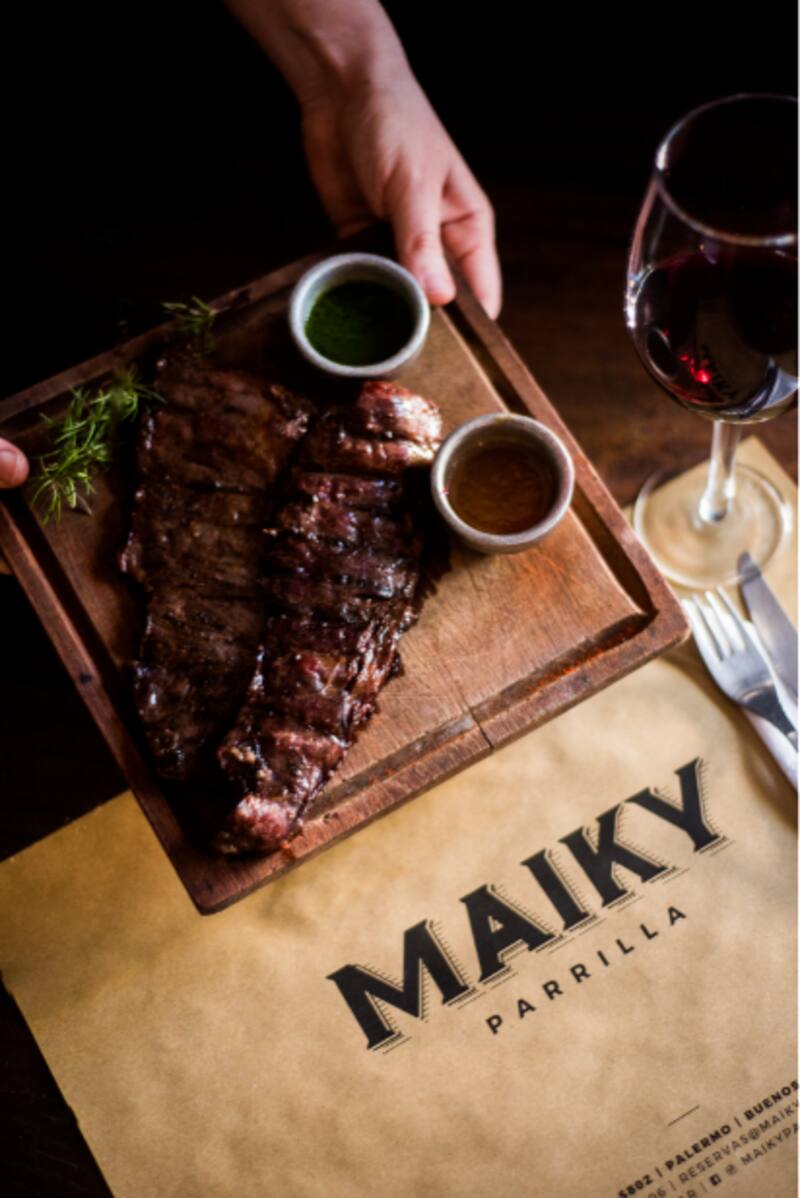 Maiky Parrilla (Gorriti 5802) ofrece parrillas y tablas para compartir entre 2 a 3 personas desde $ 1000. Entre las opciones, se presentan la parrillada (asado, vacío, bondiola, chorizo, morcilla, verduras grilladas y dips de la casa), la tabla premium de carnes rojas (ojo de bife, bife de chorizo y entraña, acompañada con papa plomo, morrón con huevo y dips de la casa), la tabla de cerdo (bondiola, costillita, matambrito y salchicha parrillera, acompañada con batata al plomo gratinada con mix de quesos y dips de la casa) y la tabla mixta (bondiola, pollo, bife de chorizo, verduras grilladas y dips de la casa).
