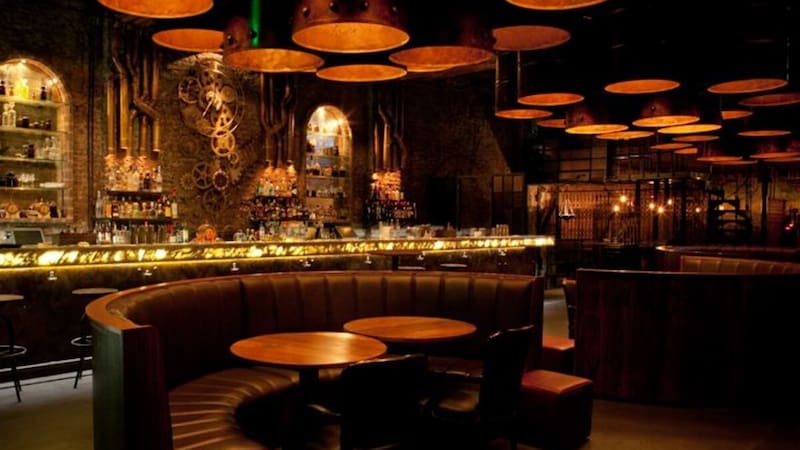 En su interior, cuentan con una barra enorme, con taburetes de cuero y enormes engranajes en las paredes que acompañan el estilo de la época.