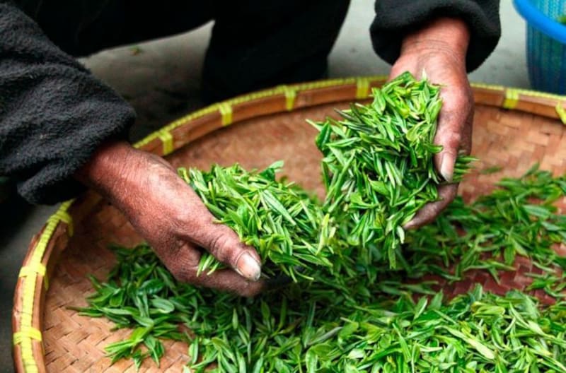La elaboración de las ramitas y tallos sigue un proceso similar al de las hojas de té verde: se evita la oxidación con vapor, se secan y se procesan.