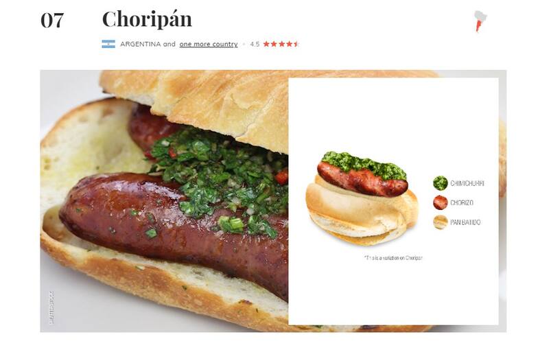 En el segundo lugar quedó la Butifarra de Perú y en el tercero ya se destaca una comida de Argentina, que vuelve a figurar en la séptima y novena posición.