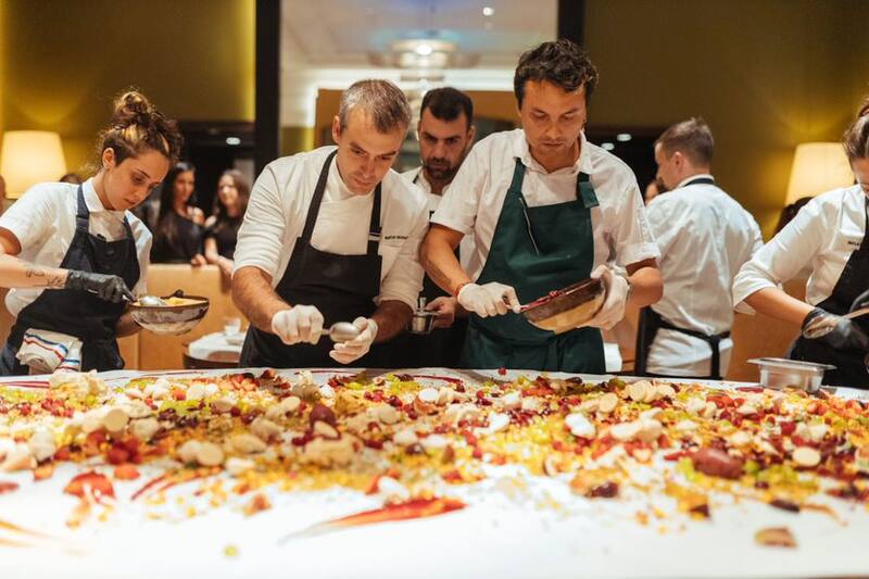 «El misterio se rompió cuando Julio Báez, como un «Pollock» de la cocina, comenzó a crear su obra. En vez de pinturas como hacía el artista estadounidense; Báez, seguido por el equipo de Gioia, empezó a derramar salsas de diferentes colores. Creando una coreografía milimétrica, los cocineros se movían por la sala llenando, completando, derramando y esparciendo diversos ingredientes sobre su lienzo...»