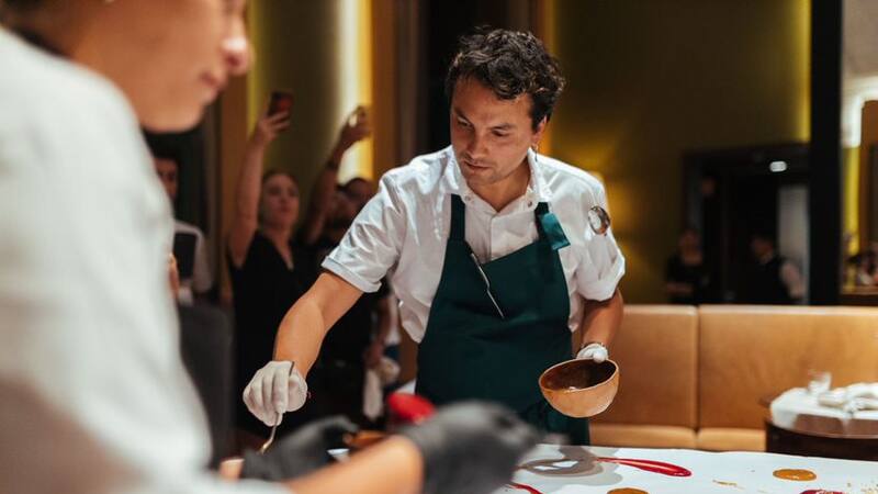 El momento icónico de la noche vino con la llegada del postre. Fuimos conducidos al interior de Gioia, en donde reinaba una gran mesa oval de madera. Como si estuviésemos presenciando una performance en un museo, reinaba el silencio y la expectativa no hacía más que crecer a medida que veíamos cómo iban apareciendo cocineros con guantes negros y cuencos que ocultaban qué había en su interior, en las manos.