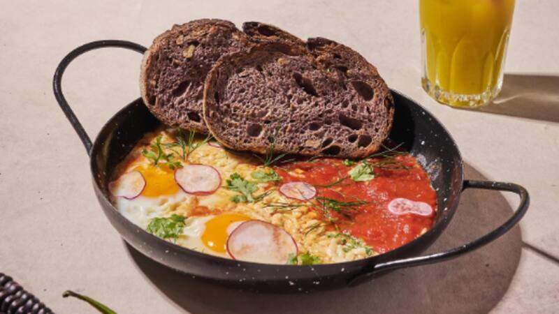 El menú brunchero tiene opciones como los famosos huevos rancheros (salsa ranchera, huevos orgánicos, queso fresco, hierbas frescas y tostones de maíz morado y nuez) a $ 920.