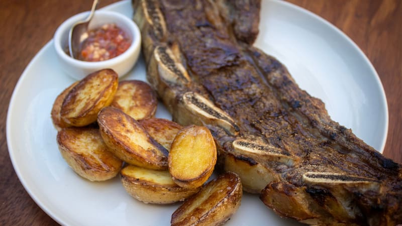 La parrilla de concepto abierto invita a los comensales a apreciar cómo los fierros calientes cocinan las mejores carnes argentinas. Se destacan cortes como tira de asado, ojo de bife, churrasquito de cerdo, pollo, entre otros.