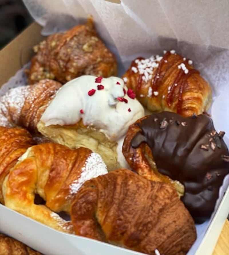 De esa distinción nacieron estrellas como las de chocolate blanco y frambuesa, la rellena de membrillo, la de canela con glacé y nueces o las bañadas con chocolate amargo. Todas tienen como base una clásica medialuna de manteca hecha con fermentación lenta, masa hojaldrada y sin ningún tipo de conservantes.