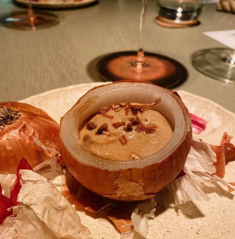 A su vez, la carta incluye reversiones sofisticadas de clásicos de su infancia como el tomaticán, un guiso que colocaron dentro de una cáscara de huevo como parte de uno de sus "snacks" de entrada. Este fue elegido entre los preferidos de ambos chefs, porque no nos olvidemos que Pedro es oriundo de la provincia cuyana también.