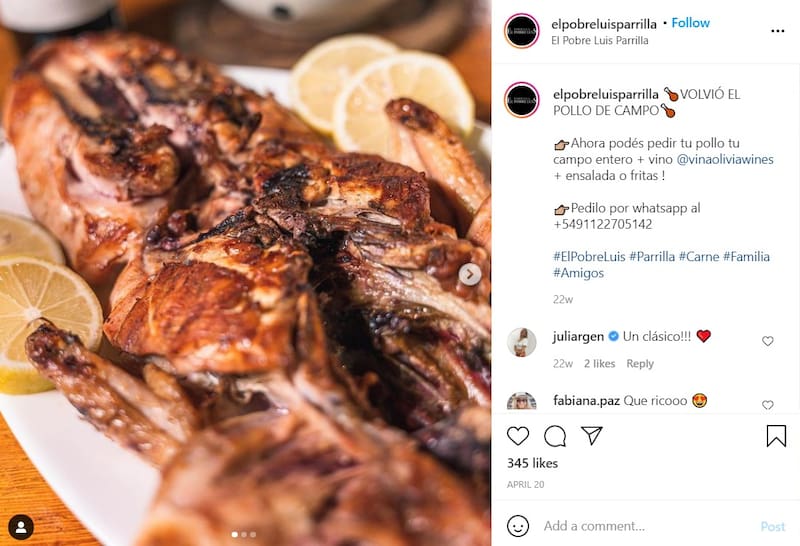 Otro icono del asado argentino: la parrilla La Cabrera, un restaurante que creó un nuevo concepto en parrilla, con la carne argentina como su producto central, y que durante tres años consecutivos estuvo entre los 50 Best Restaurants Latam y se volvió parada obligada para los extranjeros.
