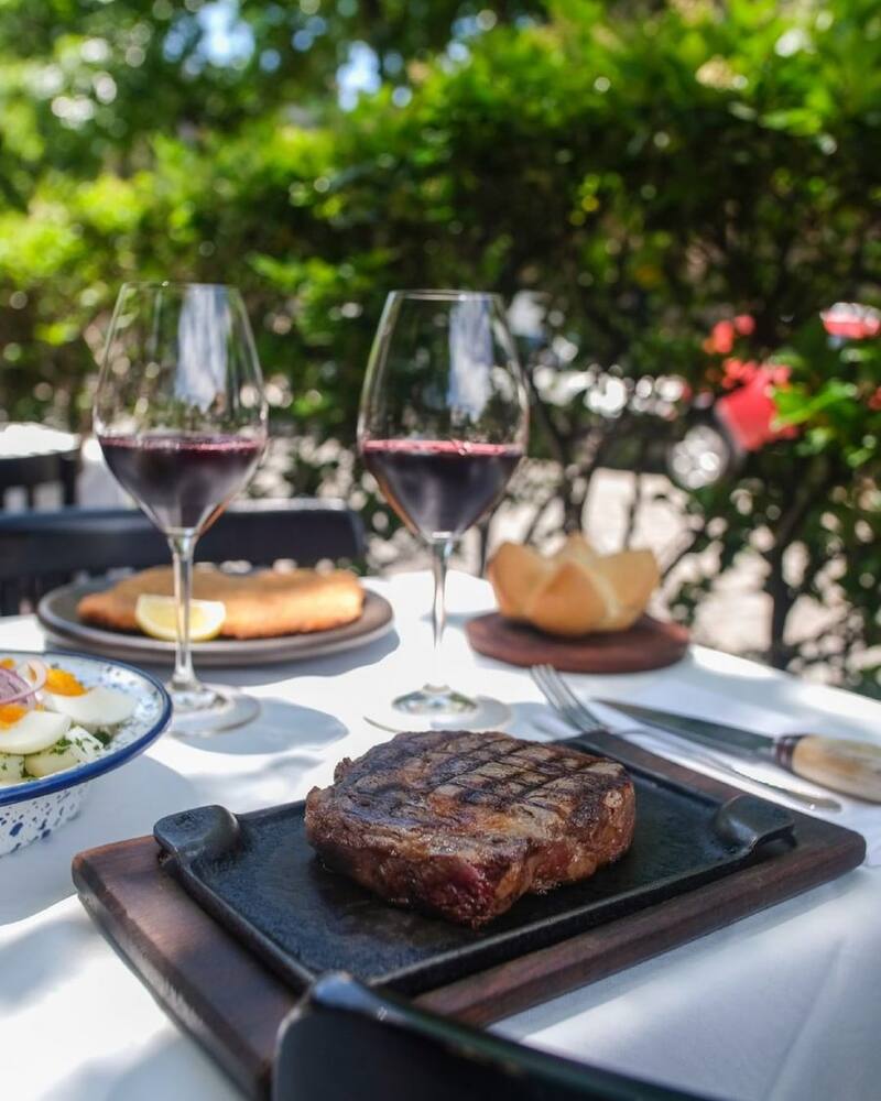 Al llegar, los amables camareros te acompañan a la mesa y te reciben con un trago de bienvenida. "Creemos que no hay una segunda oportunidad para causar una primera impresión. Queremos que nuestros clientes se sientan bienvenidos desde el comienzo, que obtengan algo especialmente para ellos antes de ordenar", detalla Juan Pablo. Aquí reina el oficio: mozos atentos (que te aconsejan qué pedir y cómo compartir las porciones); rapidez en el servicio y mucha cancha para correr de un lado para el otro el salón cuando está colmado. "Hay que tratar al comensal con el mayor de los respetos. Hacerlo sentir cómodo, atender a sus consultas y reclamos sin fastidio, entendiendo que brindamos un servicio, lo cual es un arte. Y como todo arte, debe realizarse con pasión y responsabilidad", remata. No es casualidad que todos los días el restaurante esté repleto y con fila de espera en la puerta. Todas las porciones son abundantes y para compartir. Recomendamos probar la provoleta, los vegetales grillados y el ojo de bife (dry aged).
