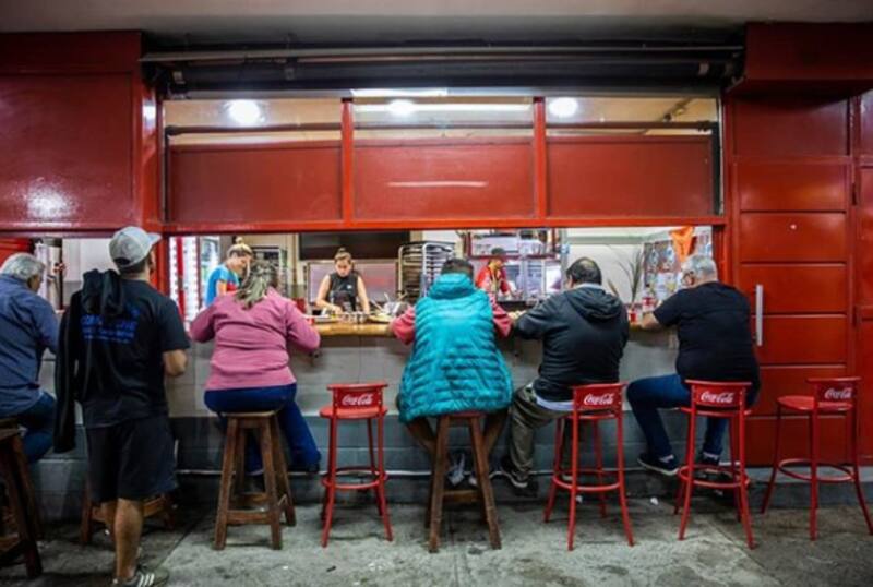 Hoy el Mercado sigue operando y nosotras seguimos trabajando, pero está totalmente diferente: tenemos un vidrio entre nosotras y los clientes, no hay más banquetas en la barra. No está bueno, pero agradecemos seguir trabajando porque así la gente que sigue trabajando en el Mercado no está sola, no está desprovista. ¡Los tenemos bien atendidos!